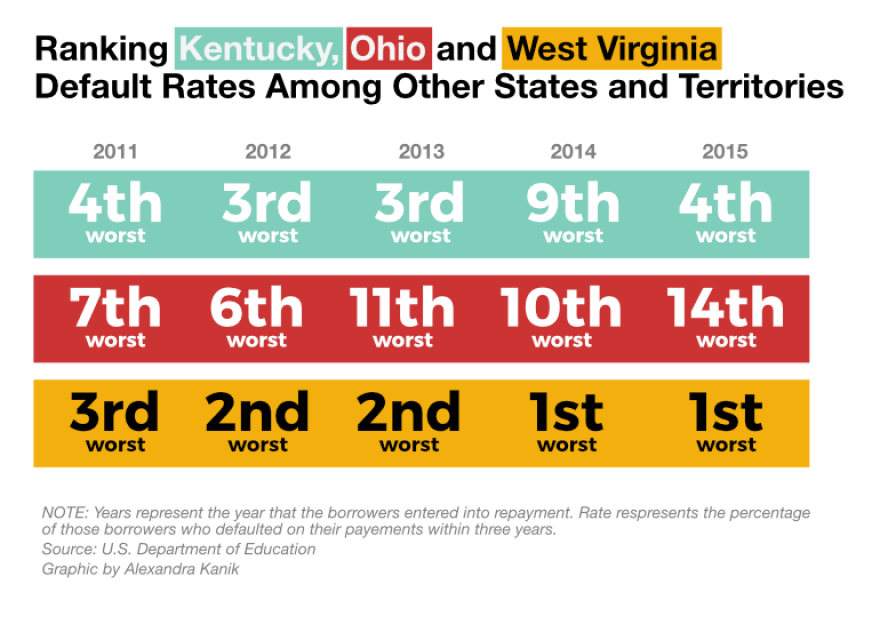 New research this month shows that West Virginia and Kentucky have some of the nation’s worst rates of student loan defaults.