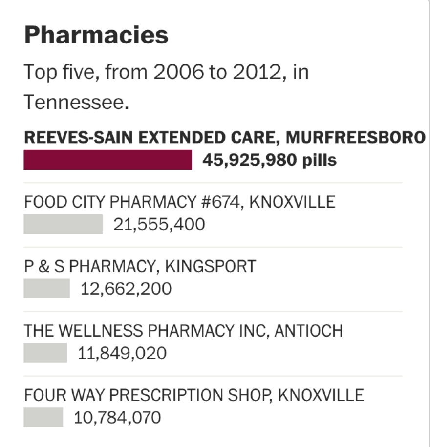 State Senator Shane Reeves of Murfreesboro says he wasn’t surprised to see his pharmacy as the top recipient of opioids in Tennessee — more than double the next highest pharmacy in the state according to a Washington Post database.